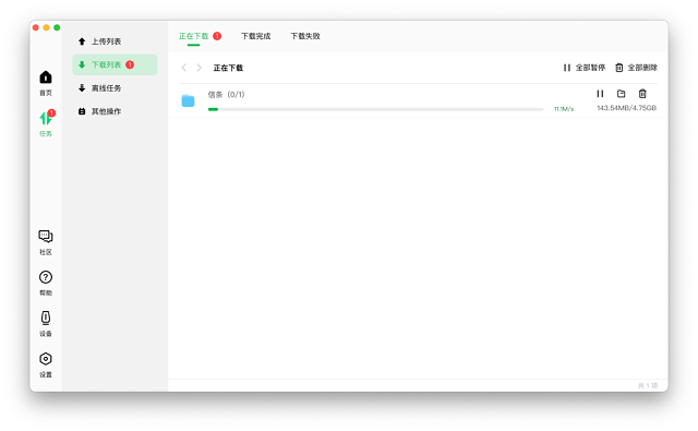 但是在非局域网下载的话,速度会降低到11mb/s左右,但总体来看也还不错。