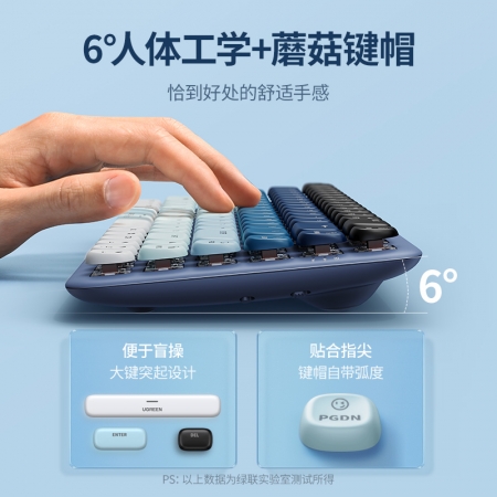 绿联fun 键盘是一款无线蓝牙机械键盘,键盘揉和浪漫樱花粉、清新薄荷绿、温柔奶黄色多种色彩,倾心点亮桌面,纯白色与静谧蓝色的渐变,在个性世界放肆敲击。fun 是快乐加满,是放肆热爱,fun 键盘,我的世界,有声有色。